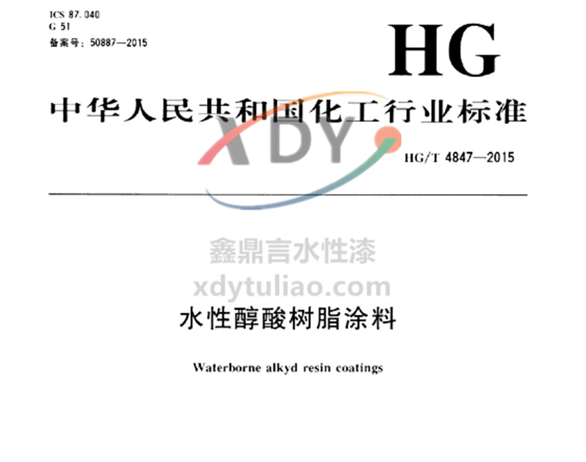 水性醇酸樹(shù)脂涂料化工行業(yè)標(biāo)準(zhǔn)HG/T4847-2015