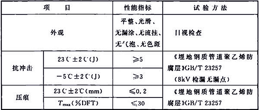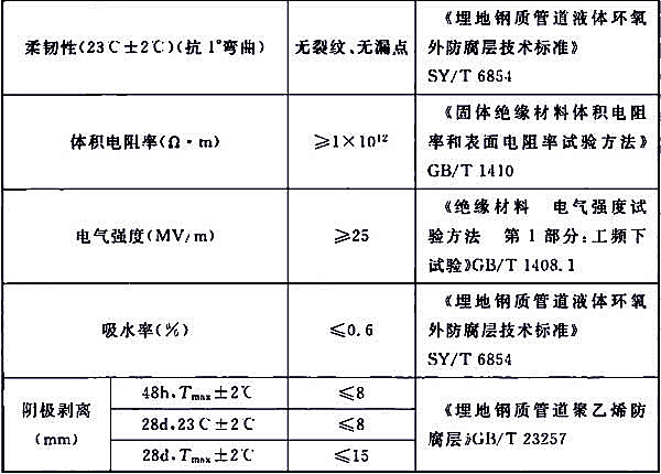表2.2-1 液體環(huán)氧補口防腐層性能指標(2A)
