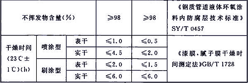 4 應(yīng)對首批液體環(huán)氧涂料產(chǎn)品按本規(guī)范表2.1和表2.2-1中規(guī)定的項目逐項檢驗,以后的每批液體環(huán)氧涂料應(yīng)按本規(guī)范表2.1和表2.2-1中的抗沖擊、硬度、23℃附著力、抗彎曲、吸水率和48h陰極剝離等性能進行檢驗,檢驗不合格時不應(yīng)使用。