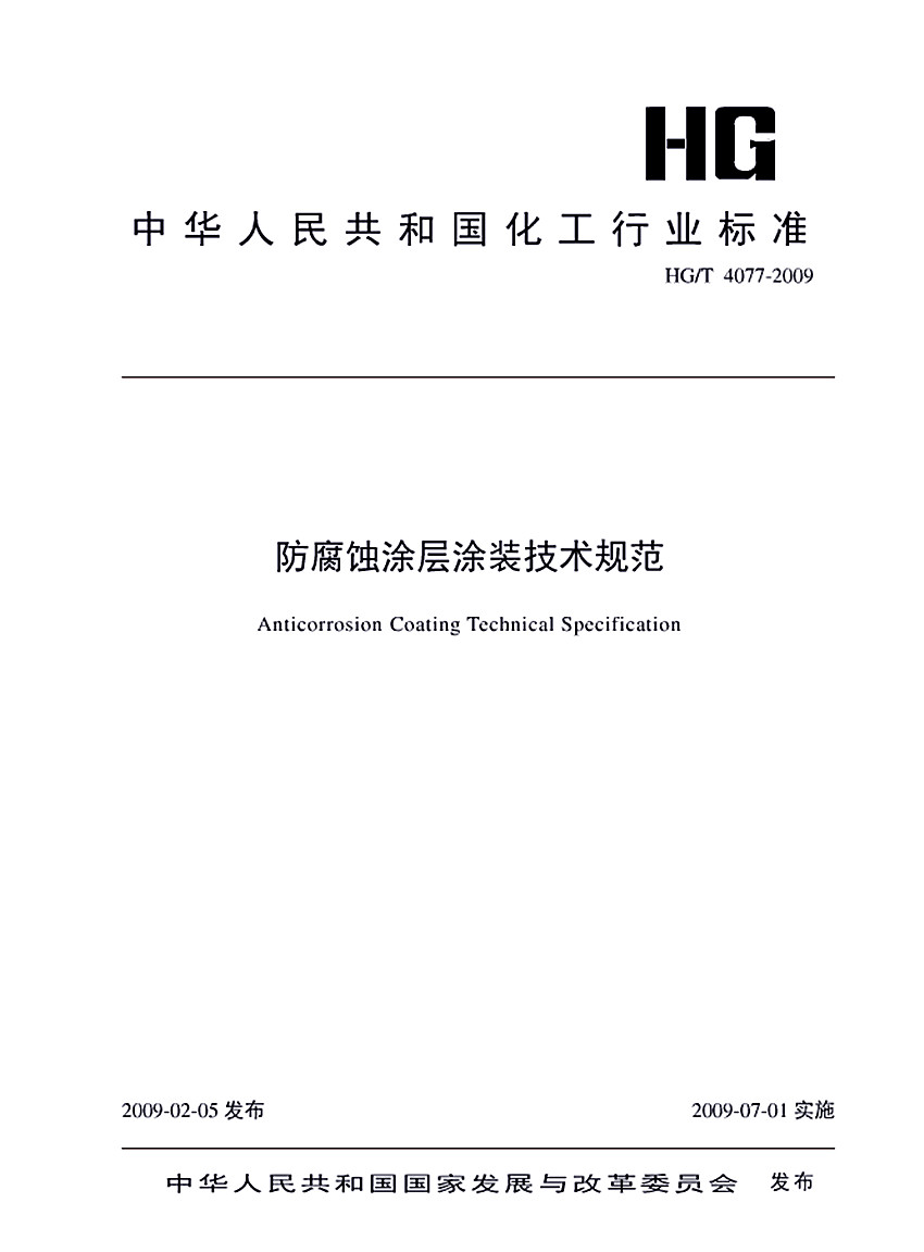 防腐蝕涂層涂裝技術(shù)規(guī)范標準HG/T 4077-2009